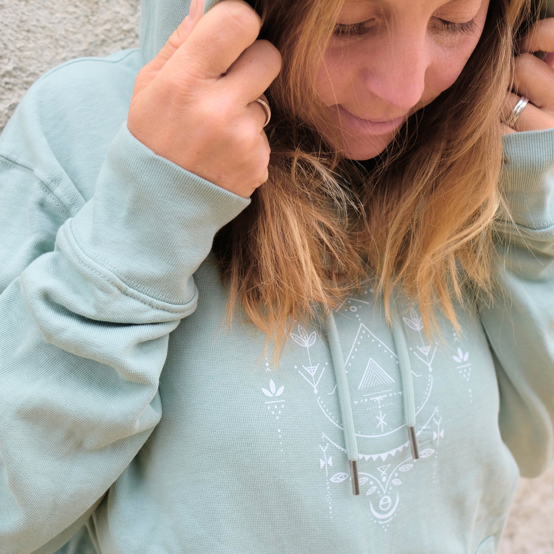A veces es lo pequeño lo que despliega profundidad. Nuestro hoodie unisex Dimensional combina diseño minimalista y expresión artística. El motivo Dotwork pintado a mano en el bolsillo del pecho proviene de nuestra amiga y artista de larga data Emily (@ink.and.earth). Su estilo está inspirado en formas naturales, geometría fina y simbología silenciosa.